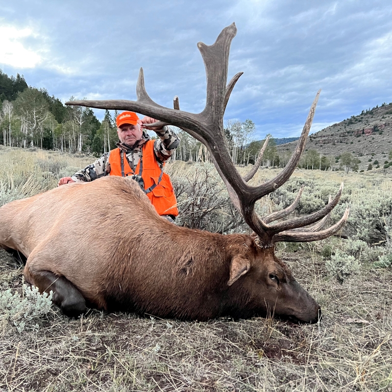 Hunt rutting bulls with a rifle! Utah offers some fantastic rifle hunts on CWMU units. This specific ranch is giant! The operators and landowners have made several habitat and water improvements, and the results are showing. Hunters should expect to see elk every day. The country is a mix of pinion juniper and burn scars scattered throughout the area. Clients will have a real opportunity at 340"+ bulls,
