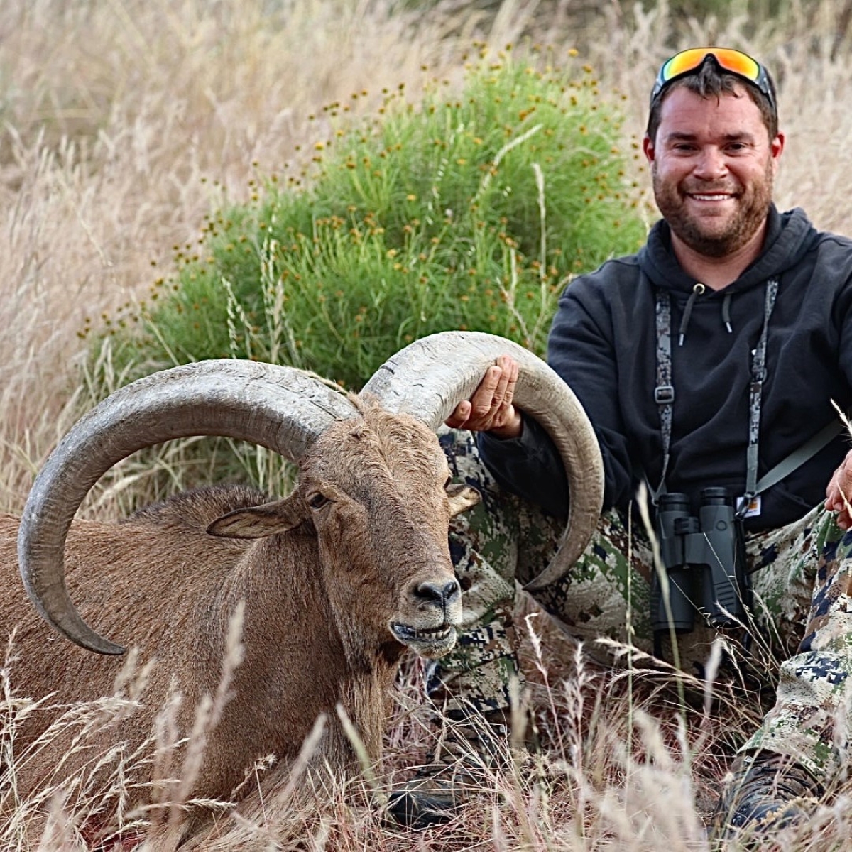 This Aoudad hunt takes place on a 37,000 acre, low fence, ranch in west Texas. The ranch is a 2 hour drive from El Paso, Texas. Most hunters will fly into El Paso and drive to the ranch the next day. The ranch carries a healthy population of Aoudad and has a very diverse landscape. Hunters of all physical abilities and ages can do this hunt. This is typically a rifle hunt, but archery is an option. You will travel by side-by-side to vantage points where you and your guides will glass. You will stay in the 4 bedroom 5 bath ranch house located on the ranch. Rams will average 30-33" in horn length. Minimum of 2 hunters required to book. Groups of 4-6 will have the entire ranch to themselves.